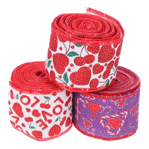 SEWACC 1セット 針金のリボン Ribbon Valentines Day Decoration リボンの結婚式 バレンタイン ポリエステル パーティー装飾 鉄 赤 3ロールの高価買取