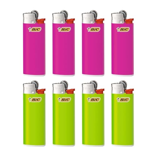 ビック(Bic) ライター J25 ミニは、使い捨てタイプでやすり付き。ピンクとイエローグリーン各4本のセットで、合計8本。小型で携帯しやすく、手軽に使えるデザインです。