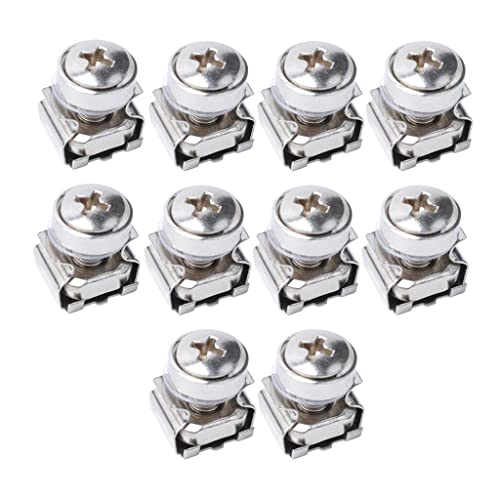 10パックロットのM6*20ラックマウントケージナットとネジ、ワッシャー付きの製品です。スクエアクリップが特徴で、耐久性と安定性に優れた取り付けが可能です。