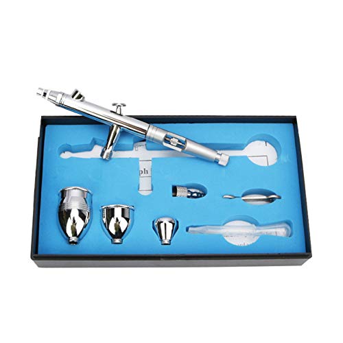 ミニエアブラシキットはデュアルアクションのペンを搭載し、重力フィード方式でスムーズな塗装が可能です。メイクアップ、アート、ネイル、ケーキ装飾に最適。サイズは90x150mm、カラーはシルバーです。