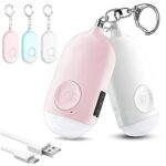 防犯ブザー【2個セット ピンク+ホワイト】はLEDライト付き、USB充電式で大音量130dBを誇ります。防水設計で、小学生から大人まで幅広く使用できる防犯アイテムです。