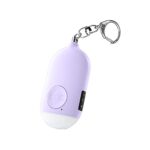 Hionの防犯ブザーはLEDライト付きで、大音量130dBの防犯アラームです。防水仕様で小学生や女性、大人向けに適したデザイン。色は紫で、持ち運びやすいサイズです。