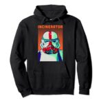 スターウォーズ マンダロリアン焼却炉トルーパーのコミックポートレートパーカーです。ユニークなデザインが特徴で、柔らかい素材を使用。ファン必見のアイテムで、快適な着心地を提供します。