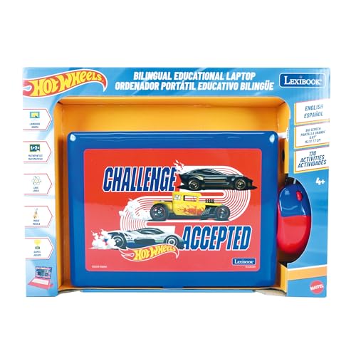 Lexibook、ホットウィール、バイリンガル、教育用ノートパソコン 英語/スペイン語 – 子供のおもちゃ、170の学習アクティビティ、ゲームや音楽、大画面、JC599HWi2