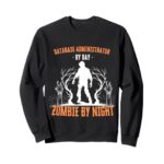 データベース管理者が日中、ゾンビの姿で夜は楽しむをテーマにしたハロウィントレーナー。ユニークなデザインで、快適な着心地を提供。ハロウィンイベントにぴったりのアイテムです。