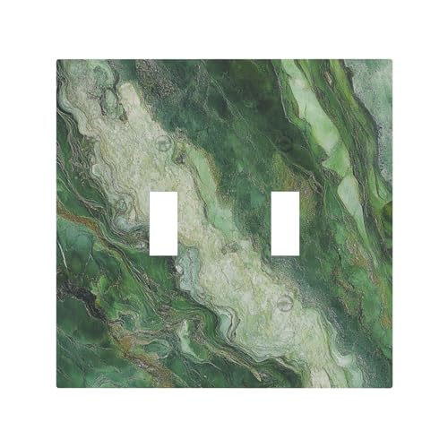 JDAKHDのライトスイッチカバープレートは、緑の大理石のような質感で、抽象的な波状の静脈デザインが特徴です。ダブルトグルタイプで、モダンなホームデコに最適なPC製の2ギャング電気フェースプレートです。