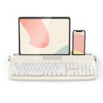 ワイヤレス104キーBluetooth5.0キーボード。レトロスタイルで一体型スタンド付き。マルチデバイス対応、3デバイス切り替え可。スマートフォン、タブレット、ノートパソコンに対応(黄色)。
