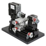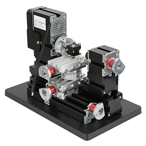 12V DC 5A 60WのミニCNC旋盤。12000RPMで金属、木材、ガラス、プラスチック加工可能。HSS旋盤工具、ベルト保護カバー付き。