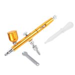 重力フィードのデュアルアクションエアブラシガンで、0.3mmのノズルを搭載。タトゥーやネイルアートに最適。ペイントクラフトに便利なキット、カラーは黄色です。