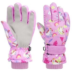[Aywyl] スキーグローブ てぶくろ 子供 キッズ 手袋 ボーイズスノーボード 防水 防寒 スノー 子ども 冬 スキーミトン 防撥水加工 防風保温 滑り止め/耐磨耗 紛失防止 男の子 女の子 (2025オリジナリティ ピンク, M(6-9歳))