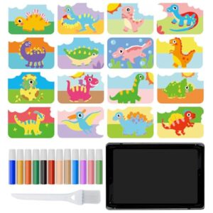 子供向けサンド アート キット – 色付き砂絵カード セット | 12色、16枚の剥がして振りかける写真、トレイとブラシ付き、子供向けの楽しいクラフトアクティビティ、クリエイティブアートプロジェクト、DIYデコレーション。