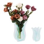 ユニークなモダンデザインのアクリル花瓶。半透明ブルーの仕上げが魅力的で、応接室やショールームに最適。植物を美しく引き立てるフローラルコンテナです。