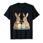 イースターの楽しさを演出する、うさぎと卵のペイントデザインTシャツ。柔らかいコットン素材で快適な着心地。春のイベントやカジュアルな日常に最適です。