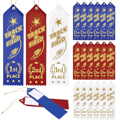 Thiccywoov 陸上競技用リボン 90個 1位、2位、3位、8インチ x 2インチ トラックフィールド賞リボン イベントカードと紐付き スポーツイベント用 コンペ賞ギフト コンテストオーナメントの高価買取ITEM