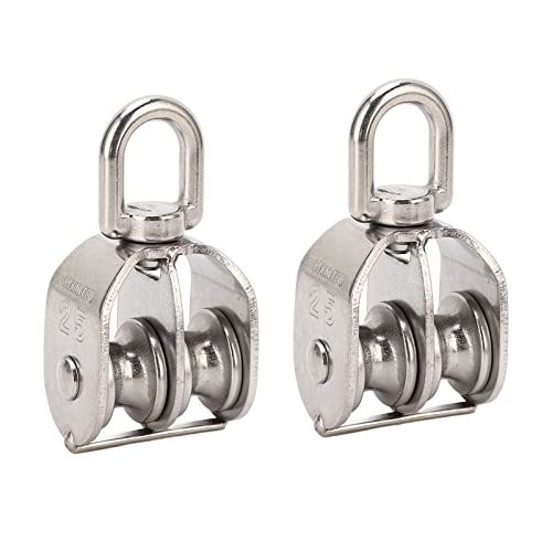 ダブルプーリーは高品質のステンレス製で、耐久性と錆に強い特性を持ちます。滑らかな回転と高荷重に対応しており、幅広い用途に適しています。2個セットでの販売で、簡単な取り付けが可能です。