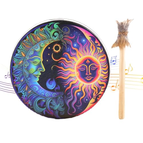 装飾デザイン鼓とドラムスティック – 手作りシャーマンドラム,シャーマニックドラム, ドラムスティック, ドラムサウンドヒー リングツール、シャーマンハンドドラム、25 センチメートルシャーマニックドラムパーカッション装飾ドラムシベリア手作りシャーマニックドラム、ドラムスティック付きシベリアドラム 装飾デザインハンドドラム、瞑想用ドラムシャーマンの製品情報