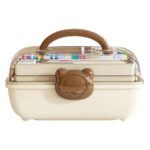 ジュエリーボックスオーガナイザーは3層構造で、髪飾りやクラフト用品を整理できます。持ち運びに便利なハンドル付きで、収納力抜群です。