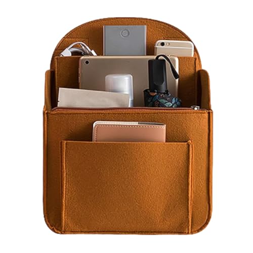 フェルト製の軽量バッグオーガナイザーインサート。リュックサックの収納を整理整頓。マルチポケットでタブレット、スマホ、本、ボトルなど小物類に対応。トラベルに最適。