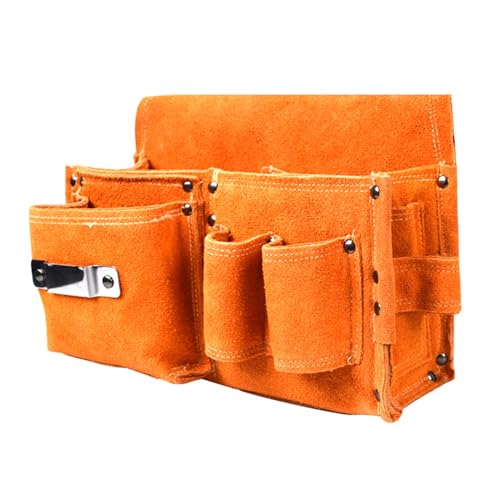 Sakmura メンズ工具バッグは、大型で耐久性のある牛革製。大容量で作業場、ガーデニング、自動車整備、建築、キャンプに最適な携帯型ベルトポーチです。