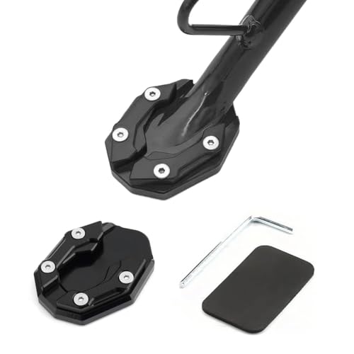 Coollooda バイク サイドスタンド プレート キックスタンド プレート【合金製 ノンスリップ 沈込防止】パッド エンド ワイドタイプ 汎用 サイドスタンド 延長ブラケット パーツ 取り付け付き部品 適用 PCX125/PCX150/PCX160/DL250SX (黒)