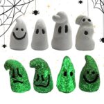 夜光のミニ樹脂幽霊は、可愛らしいデザインで発光します。8個セットで、ガーデンやドールハウス、テラスの季節のホリデーランドスケープ装飾に最適です。