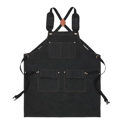 Ylnailky ワークショップエプロンは防水で調整可能な重作業用です。ワックスキャンバス製で、工具やキッチン用品に最適。クロスバックストラップ付きで、男女兼用のデザインです。