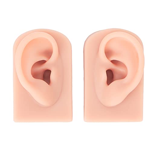 シリコン製のリアルな耳型モデル。左右セットでソフトかつフレキシブル、ピアス練習やジュエリーディスプレイ、鍼灸指導に最適です。
