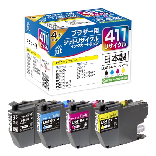 Brother LC411 4色セットは、高品質のリサイクルインクで、鮮やかな印刷を実現します。互換性があり、環境に優しい選択肢です。充実の容量でコストパフォーマンスも良好。