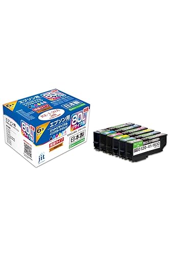 ジット エプソン IC6CL80L 対応 増量 リサイクルインク 日本製JIT-NE80L6Pは高品質なリサイクルインクです。互換性があり、エコな選択肢。長持ちする増量タイプで、印刷コストの削減に貢献します。