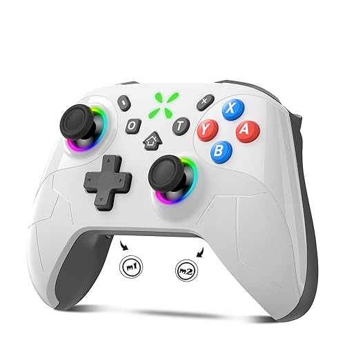 Switch2コントローラーは2025年金賞受賞モデルで、Switch1/2代に対応。Bluetooth無線接続、9色RGBライト、1000mAhバッテリーで20時間使用可能。背面ボタン、マクロ機能、HD振動、6軸ジャイロセンサー搭載。Android/iOS/PCにも対応。