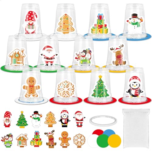 Justforjoyful 12セット クリスマス スノードーム メイキングキット 子供用クリスマスクラフト クリアプラスチックカップ スノードームキット 雪だるま サンタ鹿 DIY クラフト クリスマスアートとクラフト 男の子 女の子 ホリデーアクティビティの高価買取
