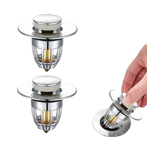 Doyime 洗面台ポップアップは、2個入りの排水栓で、内径34mm-40mmに適合。ステンレス製と真鍮製で、目詰まり防止や防臭、防虫機能があり、掃除も簡単。取り外し可能で錆びにくく、キッチンやバスルームで使用できます。