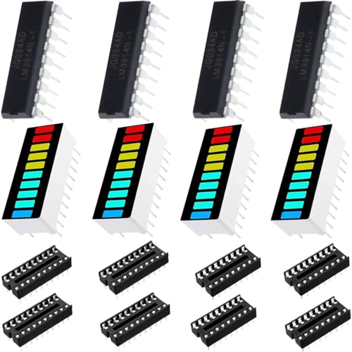 Youmile 8個 LED バー表示 10 セグメント LED バー グラフ表示モジュール赤黄青緑+ LM3914N-1ドット/バーディスプレイドライバDIYのためのDIP-20 DIP-18 ICソケット付きLEDディスプレイドライバコンボキットの高価買取