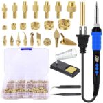 90Wデジタルはんだごてセットで、ヒートセット挿入工具や130個のねじ込みインサートナット、ヒートセットインサートチップ8個、パイログラフィー燃焼チップ9個を含む3Dプリント用工具です。
