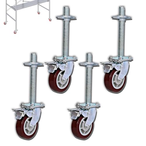 Koubhyj単管パイプキャスターは、4個セットのねじ付きステムを備えたローリング足場用キャスターです。耐荷重約800KGで、耐摩耗性に優れ、簡単に設置可能。ブレーキ付きで安全性も考慮されています。