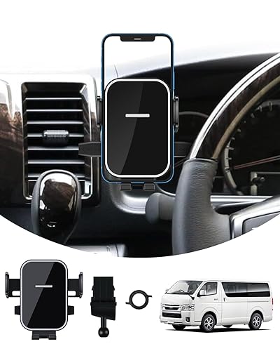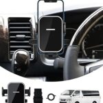 Cartistのトヨタハイエース200系専用スマートフォンホルダー。片手操作可能で360度回転、鏡面仕上げ。簡単取付で安定した固定が特長のBタイプ(ブラック)。