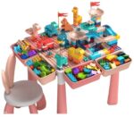 TPPTの子ども用テーブル椅子セットは、ブロック遊びや学習に最適。ウサギの耳型椅子(45*45cm、ピンク)が可愛い。多機能で、絵かきやダイニングにも使えます。