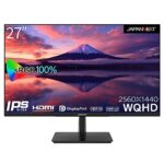 JAPANNEXTの27インチWQHDモニターは、2560×1440解像度のIPSディスプレイで、HDMI/DisplayPort接続可能。スピーカー内蔵、VESA対応、ブルーライトカット機能も搭載。