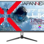 JAPANNEXT 27インチ ゲーミングモニター。4K解像度、120Hzリフレッシュレート、1ms応答速度。HDMI/DisplayPort対応、sRGB100%、DCI-P3:93%、HDR400相当。PS5 4K:120Hz接続可。2年保証付き。