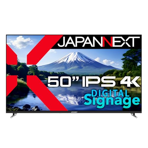 JAPANNEXT 50インチIPSパネル搭載の大型4K液晶モニター。HDMI・HDR対応、音声入力端子、オプティカル端子、USB再生機能あり。サイネージ用途にも最適。