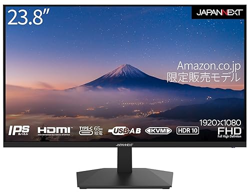 JAPANNEXTの23.8インチモニターは、フルHD解像度(1920×1080)で鮮明な画質を提供。IPSパネル採用により広視野角で色再現性も優れています。コンパクトなデザインがデスクに最適。