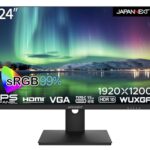 JAPANNEXT 24インチモニターはWUXGA 1920×1200解像度のIPSディスプレイ。HDMI接続、内蔵スピーカー、VESAマウント対応、ブルーライトカット機能を搭載しています。