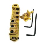 6ストリングエレクトリックギター用のローラーサドルブリッジ。高品質素材で製造され、音質向上とチューニング安定性を提供。付属のアレンレンチで簡単に交換可能。ギターアクセサリーパーツとしておすすめです。