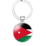 ジョーダン国旗デザインのキーチェーン。男女兼用で、ステンレススチールと象嵌ガラスを使用。ギフトにも最適なワンサイズです。