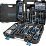 Sundpey 工具セット148点組は、ラチェットドライバー、六角レンチ、プライヤー、電圧テスターなど、多機能なホームツールを含む作業工具セットです。男女問わず使用可能です。