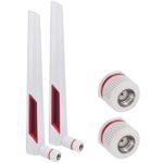 LeeyovkのデュアルバンドWiFiアンテナは、2.4GHz、5GHz、5.8GHzに対応し、5dBiの高利得でネットワーク接続を強化。RP-SMAオス接続、主に防犯カメラやトレーラーのバックカメラに最適な交換用アンテナ(2本パック)。