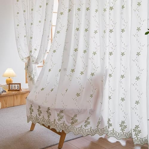 ANJYUUのレースカーテンは、透けない遮光タイプで刺繍デザイン。UVカット、遮熱、断熱機能があり、外から見えにくい。洗えるのでお手入れ簡単。幅50cm・丈110cmの両開きで、子供部屋や出窓に最適。おしゃれな北欧スタイル。