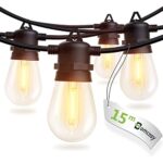 Bomcosy LEDストリングライトは15mの防雨型で、LED電球15個と灯芯1個、E12ソケット15個が付属。PC素材製で連結可能。アウトドアや結婚式、パーティーに最適で、防水性能が向上しています。