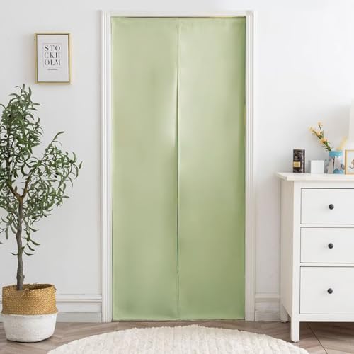 SUGOI のれん おしゃれ 遮光 暖簾 170cm丈 幅85cm 目隠し 間仕切りカーテン 断熱保温 ロング 遮光 和風 北欧 厚手 無地 防寒 防音 玄関 キッチン リビング お店 飲食店 出入り口 洗面所 間仕切り ノレン ドアカーテン 半間のれん お洒落 洗える 1枚 グリーン