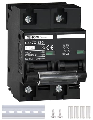 DIHOOLの直流回路遮断器は、2極設計でDC 12-1000V、100Aに対応。太陽光パネルコントローラーや発電システムに最適です。安全性向上を図ります。